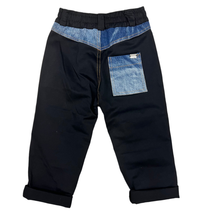 Questo pantalone doppio tessuto unisce la morbidezza del cotone a inserti in denim resistenti, offrendo comfort e durata. Con tre tasche funzionali, è ideale per bambini dai 2 ai 16 anni, garantendo praticità e stile. Perfetto per accompagnare le attività quotidiane con un design versatile e robusto.