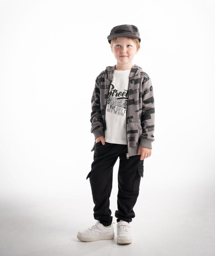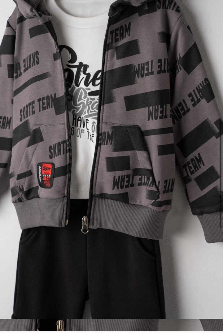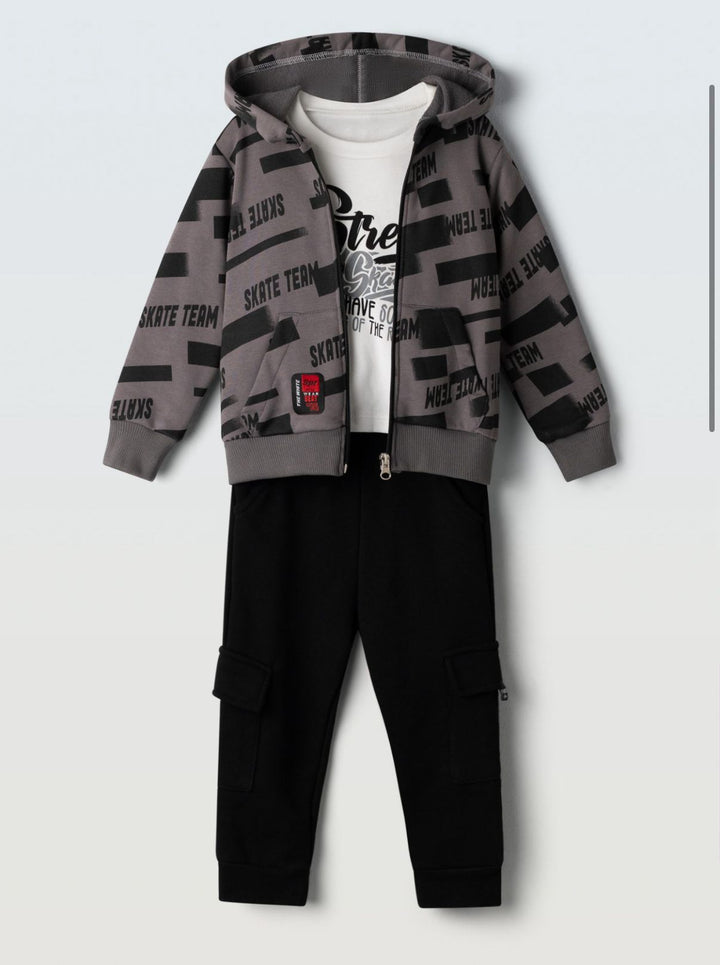 Questa tuta 3 pezzi per bambino combina una felpa con zip, una maglia e un pantalone, tutti realizzati in cotone di alta qualità. Il materiale naturale assicura comfort e traspirabilità durante tutta la giornata, mentre il design coordinato facilita l’abbinamento e la vestibilità. Ideale per attività quotidiane o momenti di relax, garantisce praticità e morbidezza, rispettando la pelle delicata dei più piccoli.