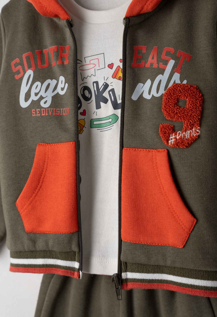 Questa tuta 3 pezzi per neonato combina praticità e comfort, ideale per i piccoli durante ogni stagione. Include una felpa con zip e cappuccio per una protezione extra dal freddo e una maglia in cotone morbido che garantisce traspirabilità e delicatezza sulla pelle sensibile del bambino. Un completo versatile e funzionale, perfetto per le giornate dinamiche dei più piccoli.