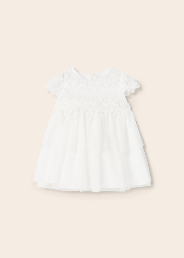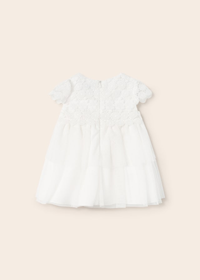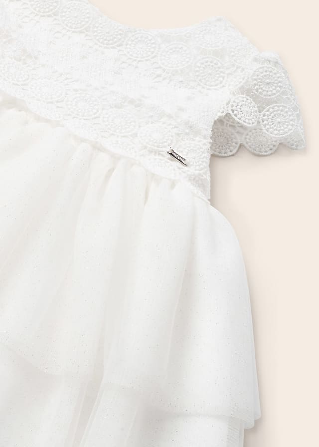Abito combined merletto e tulle neonata