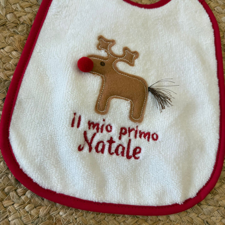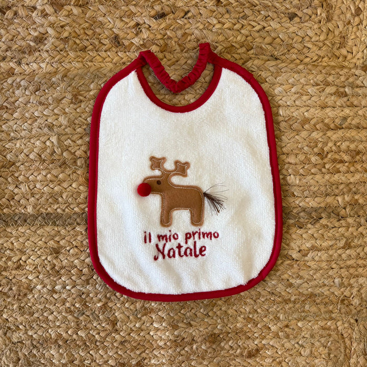 Realizzata in soffice spugna di bamboo, la bavetta "Il Mio Primo Natale" con disegno renna offre comfort e assorbenza superiori per il tuo bambino. Il tessuto naturale è delicato sulla pelle sensibile, mentre il motivo festivo aggiunge un tocco natalizio perfetto per celebrare questo momento speciale. Ideale per proteggere i vestiti durante i pasti invernali con stile e praticità.
