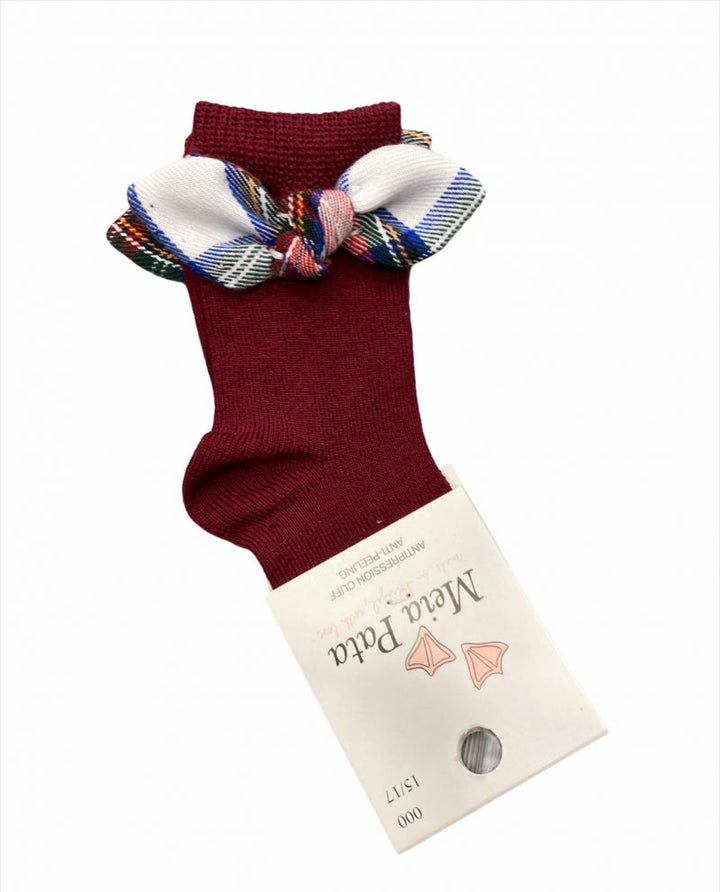 Calzino alto vinaccio con fiocco nodo tartan