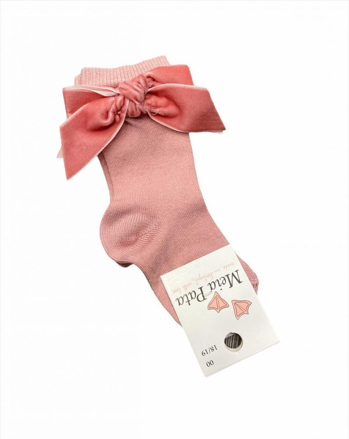Calzino alto con fiocco in velluto rosa maquillaje