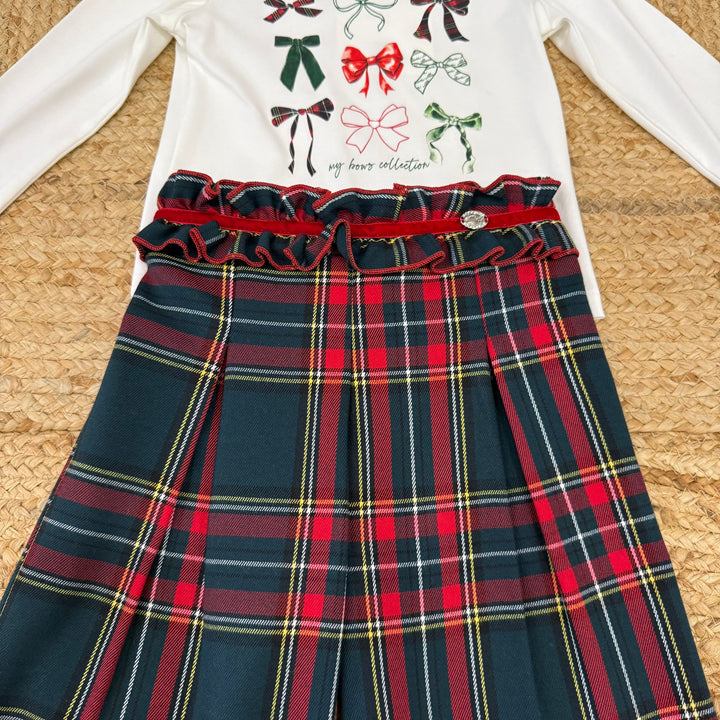 Questo completo 2 pezzi per bambina unisce eleganza e comfort ideale per le feste natalizie. Il pantalone a palazzo offre una vestibilità ampia e raffinata, mentre la shirt in cotone a manica lunga con stampa aggiunge un tocco festoso e delicato sulla pelle. Perfetto per occasioni speciali, garantisce libertà di movimento e stile senza tempo.