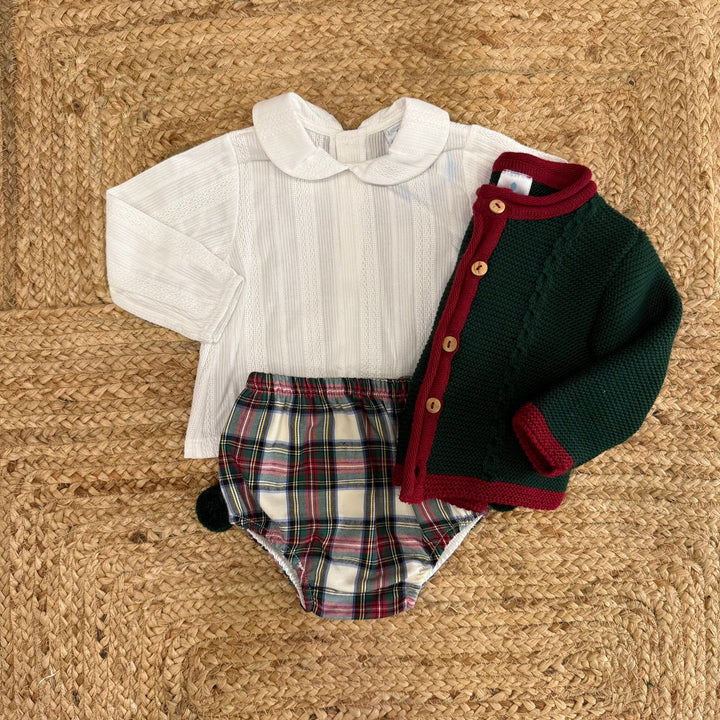 Completo dell'azienda portoghese Sardon, composto da culottina, giacchino e camicia in cotone con trama e colletto