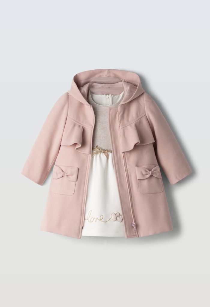 Questo completo elegante in tre pezzi per bambina include cappotto, abitino e borsetta coordinata, pensati per offrire uno stile raffinato e curato. Realizzato con materiali di qualità, garantisce comfort e praticità durante occasioni speciali, valorizzando la silhouette con dettagli raffinati e design sofisticato. Perfetto per eventi formali, questo set assicura un look completo e armonioso dalla testa ai piedi.