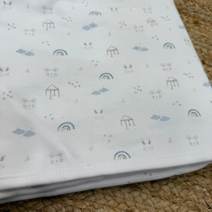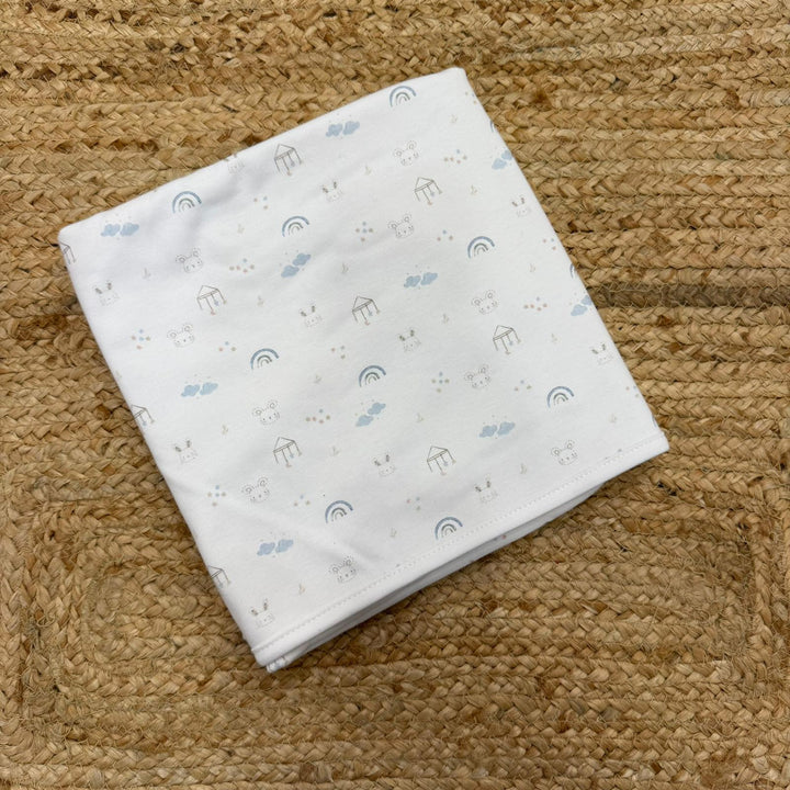 Questa copertina fantasia, realizzata in Spagna, si abbina perfettamente alla tutina e alla bavetta corrispondenti, creando un coordinato raffinato e armonioso. Ideale per completare l’outfit del neonato con stile, offre morbidezza e comfort grazie ai materiali di alta qualità. Perfetta per proteggere il bambino con eleganza, mantenendo una continuità di design che esprime cura e attenzione ai dettagli.