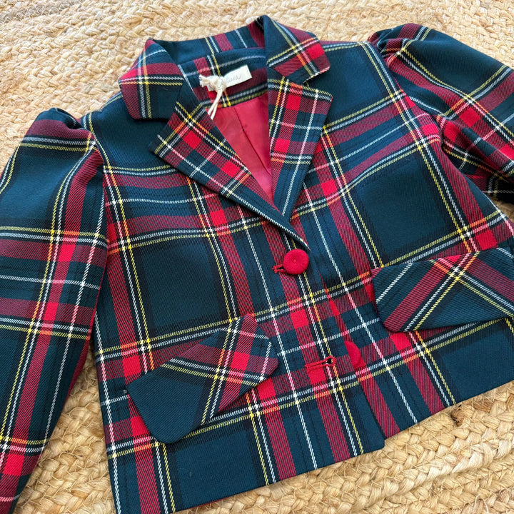 Giacca tartan in puro stile natalizio, perfetta per completare un look coordinato durante le festività. Il motivo tartan elegante conferisce un tocco sofisticato e tradizionale, ideale per occasioni speciali. La struttura della giacca garantisce una vestibilità impeccabile, mentre i dettagli curati la rendono un capo versatile da abbinare facilmente con altri elementi del guardaroba. Un'opzione raffinata per le bambine che desiderano un abbigliamento festivo di qualità.