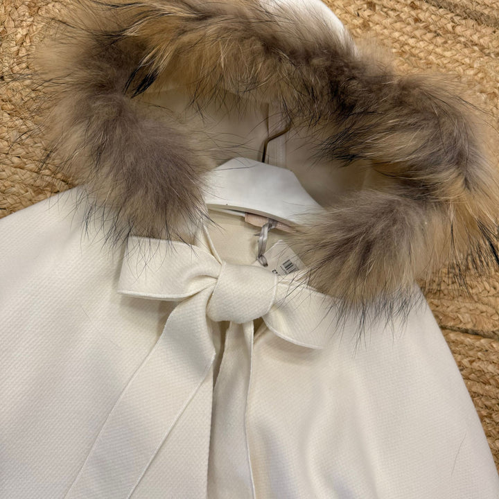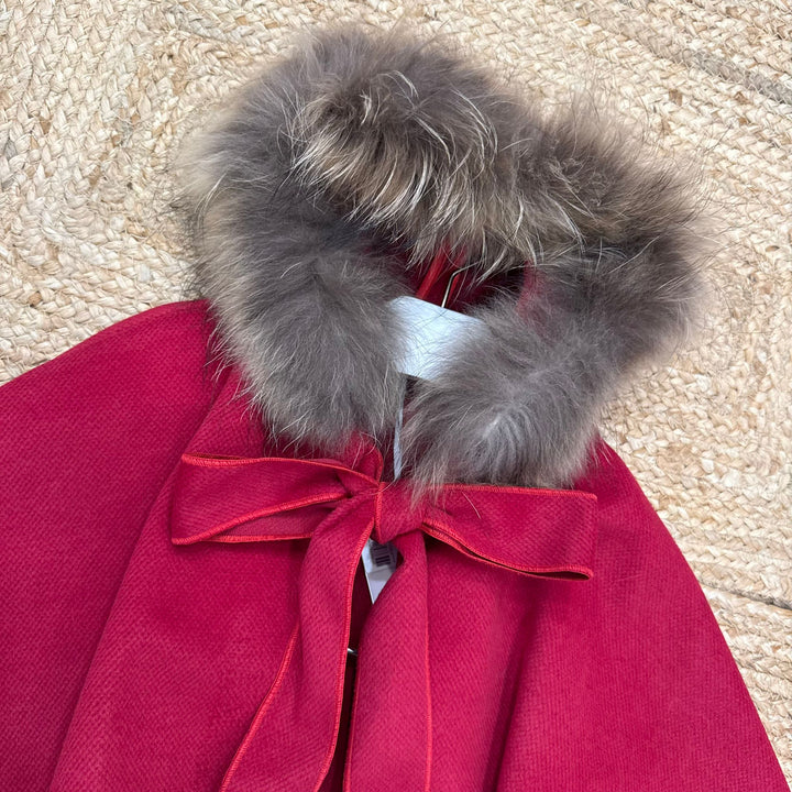 Questa mantella elegante con pelliccia unisce stile e comfort, offrendo un tocco raffinato a qualsiasi outfit. Disponibile in vari colori, permette di scegliere la tonalità che meglio si adatta al tuo guardaroba. La pelliccia avvolgente assicura calore senza rinunciare a un design sofisticato, ideale per le stagioni fredde. Perfetta per occasioni formali o per aggiungere un dettaglio chic al look quotidiano.
