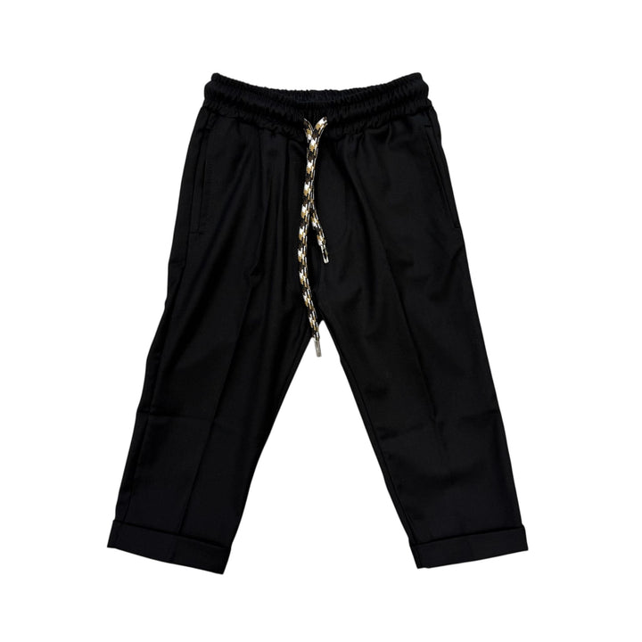 Realizzato in tessuto pesante di alta qualità, questo pantalone a tre tasche con laccio in vita unisce comfort e raffinatezza. La vestibilità morbida assicura libertà di movimento, mentre la targhetta elegante sul taschino posteriore aggiunge un dettaglio distintivo. Ideale per bambini da 2 a 16 anni che cercano stile senza rinunciare alla praticità.