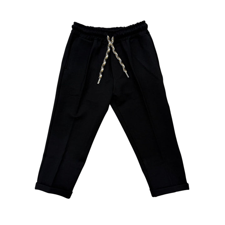 Realizzato in tessuto mezzi tempi, questo pantalone a tre tasche con laccio in vita unisce comfort e raffinatezza. La vestibilità morbida assicura libertà di movimento, mentre la targhetta elegante sul taschino posteriore aggiunge un dettaglio distintivo. Ideale per bambini da 2 a 16 anni che cercano stile senza rinunciare alla praticità.