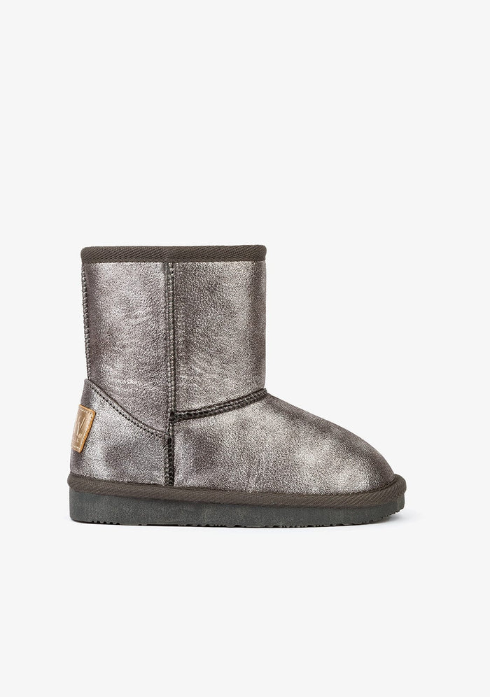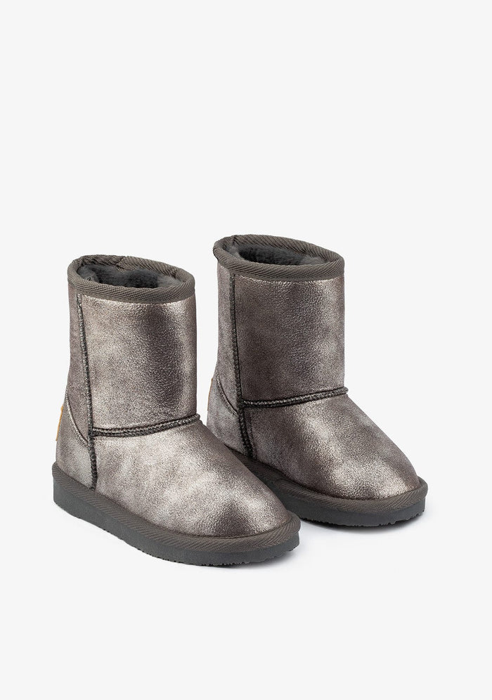 Stivali di colore Peltro realizzati con materiale metallico, con dettaglio sul tallone dell'etichetta Osito. Stivali perfetti per l'inverno. All' interno presenta una pelliccia sintetica