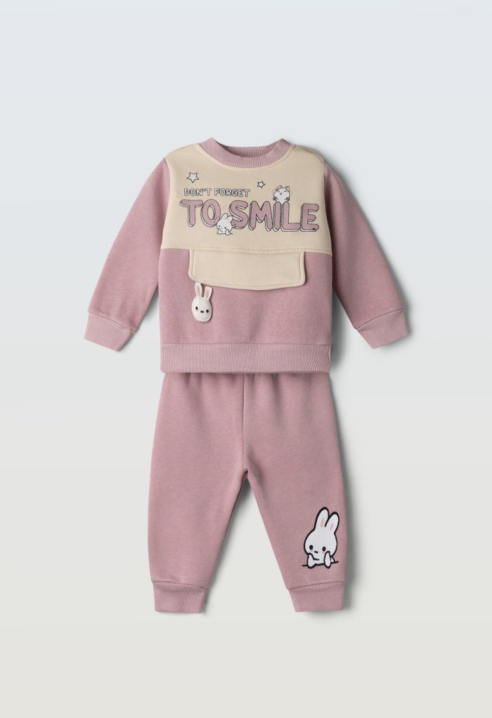Questa tuta 2 pezzi per neonata è realizzata in morbido tessuto felpato, ideale per mantenere calda la tua piccola durante le giornate più fresche. Il design comprende una felpa con finta tasca, che aggiunge un tocco di stile senza compromettere la praticità e il comfort. Perfetta per momenti di gioco e relax, questa tuta combina funzionalità e vestibilità studiata appositamente per i più piccoli.